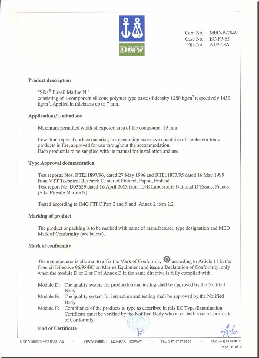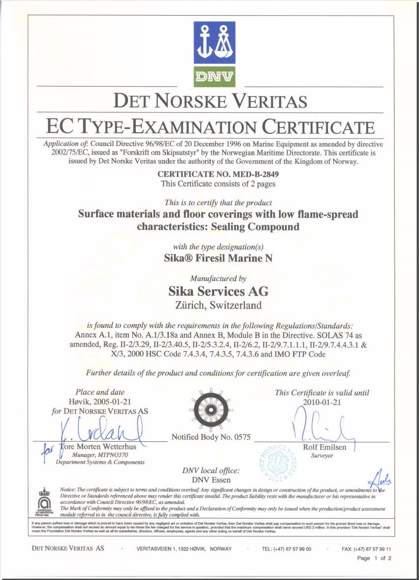 西卡防火胶。Marine NW合DIN 4102 B1的要求以及国际v事组l制定的规定Q在我看来)。Sika Fire...